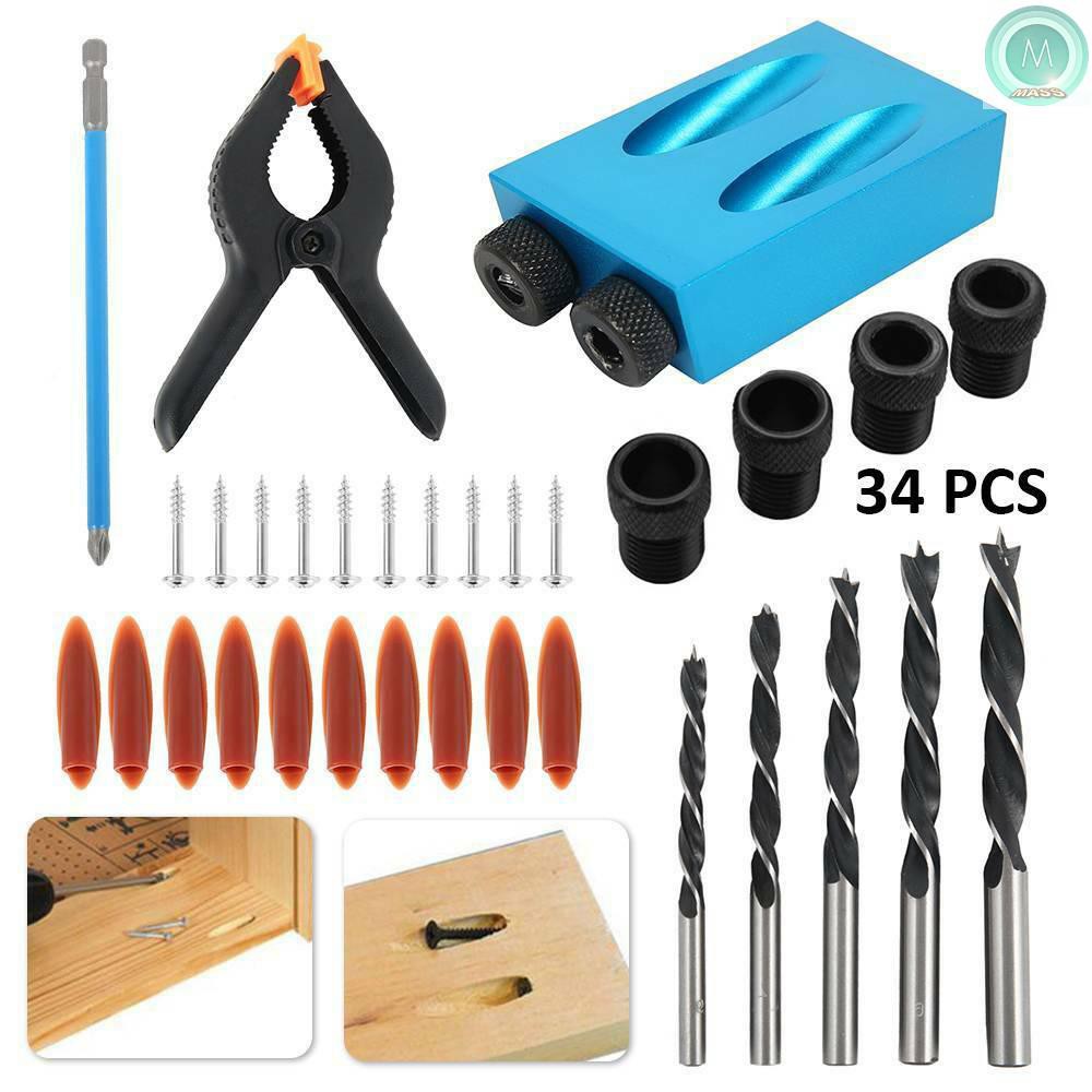 20 Year 34pcs Woodworking Pocket Hole Jig Drill Guide Set Hole Puncher Locator Bit Tools Shopee Indonesia